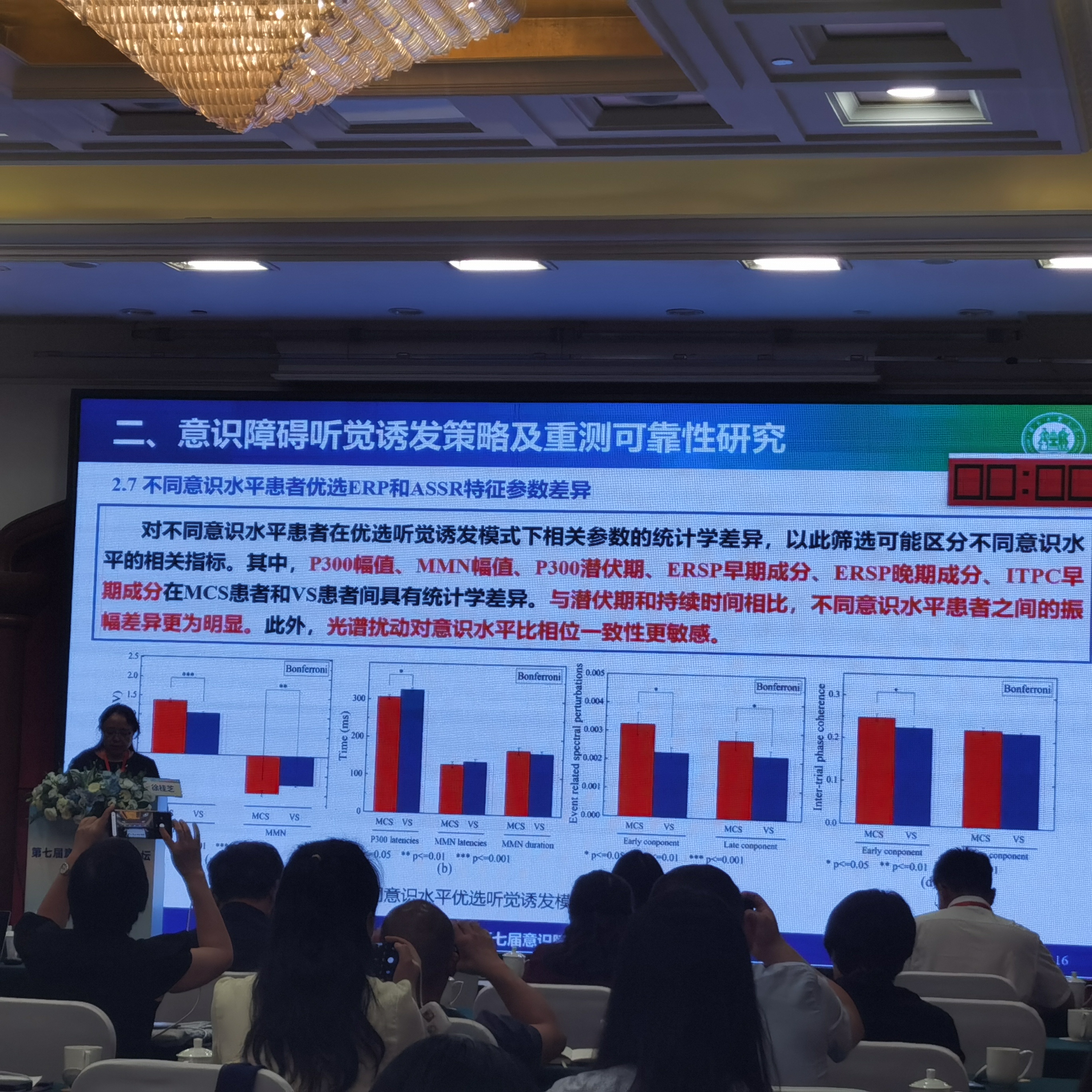 随后,首都医科大学附属北京天坛医院的何江弘教授带来了题为《中国慢性意识障碍研究 - 30 年回顾》的分享。他在报告中指出,脑功能障碍检测主要依靠三大核心手段:临床检查、影像学检查与神经电生理检查。其中,在神经电生理检测领域,他重点介绍了事件相关电位(ERP)这一关键技术,并特别强调了多模态检测手段联合应用在意识障碍领域的重要性。